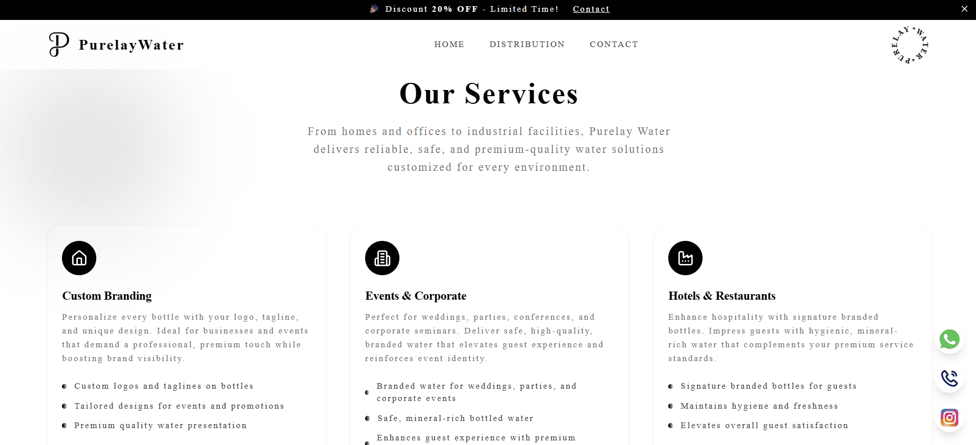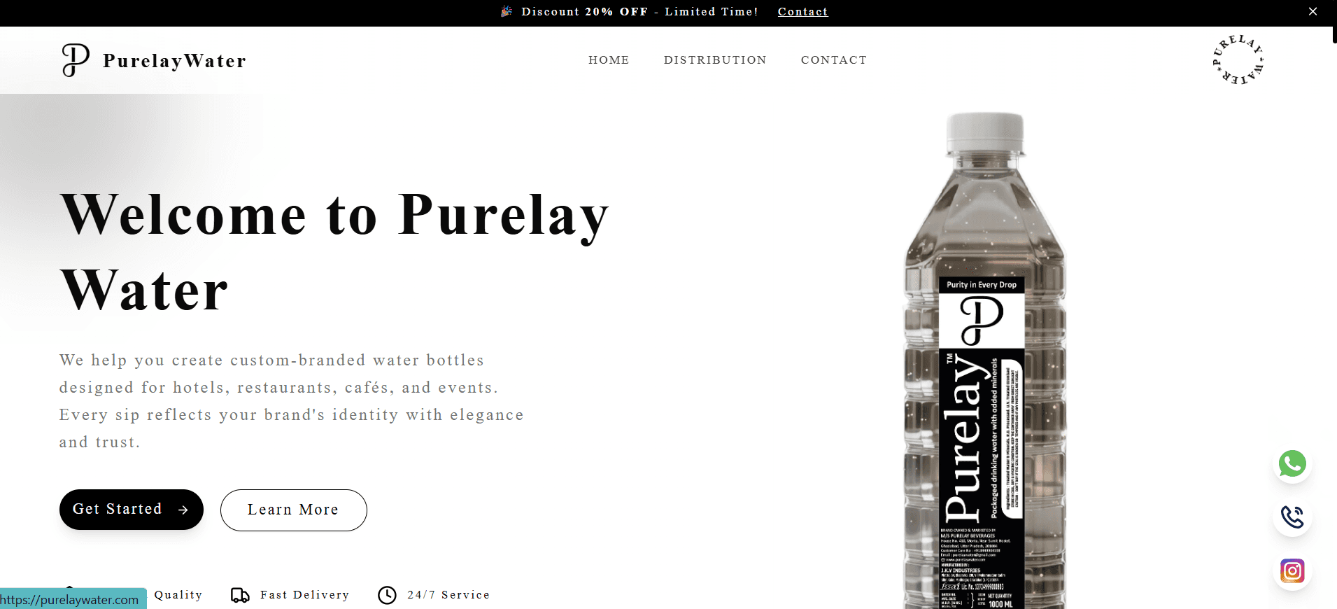 The primary challenge for Purelay Water was to establish a brand that not only delivers high-quality water but also offers businesses a unique way to enhance their brand identity. This involved creating a product that combines purity with customization, ensuring that each bottle reflects the client's brand with elegance and trust. Additionally, the company needed to implement efficient distribution systems to meet the diverse needs of residential, commercial, and industrial clients while maintaining consistent quality and service.
